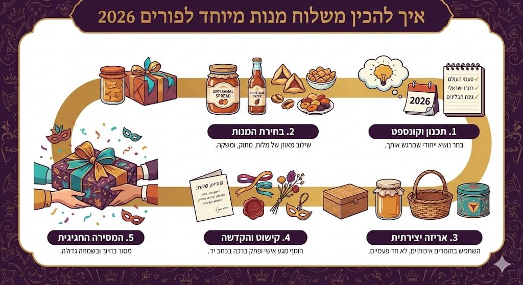 הכנת משלוח מנות מיוחד לפורים 2026 דורשת תכנון מוקדם, שילוב של יצירתיות ודיוק בפרטים הקטנים כדי להפוך את המצווה לחוויה בלתי נשכחת עבור המקבלים . הפעם נסביר לכם כיצד ליצור משלוח מנות מקצועי, מקורי ומרגש, המבוסס על ניסיון מעשי ושדרוגים טכנולוגיים ועיצוביים המתאימים לשנת 2026.