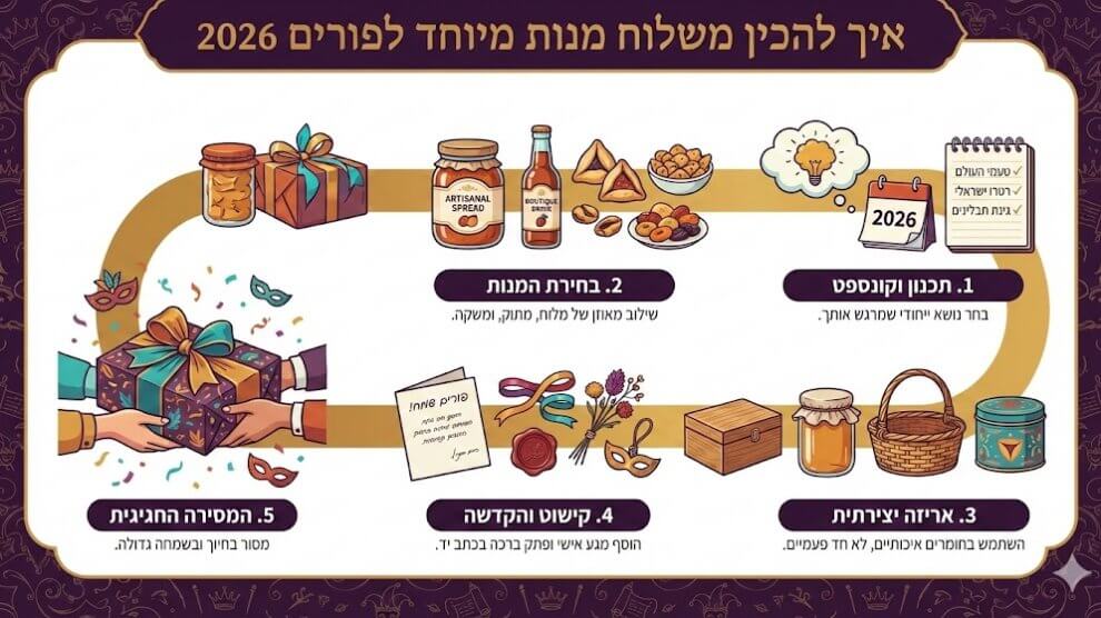 הכנת משלוח מנות מיוחד לפורים 2026 דורשת תכנון מוקדם, שילוב של יצירתיות ודיוק בפרטים הקטנים כדי להפוך את המצווה לחוויה בלתי נשכחת עבור המקבלים . הפעם נסביר לכם כיצד ליצור משלוח מנות מקצועי, מקורי ומרגש, המבוסס על ניסיון מעשי ושדרוגים טכנולוגיים...