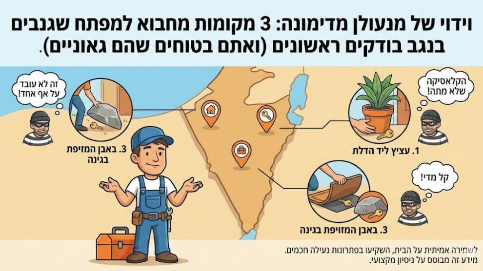 התשובה הקצרה והכואבת היא שאותם מקומות שאתם מחשיבים כגאוניים ובלתי נראים הם בדיוק המקומות הראשונים שכל פורץ מתחיל יבדוק לפני שהוא בכלל טורח לשלוף את הלום או את כלי הפריצה המתוחכמים שלו: מתחת לשטיח הכניסה המאובק, בתוך “האבן המלאכותית” או...